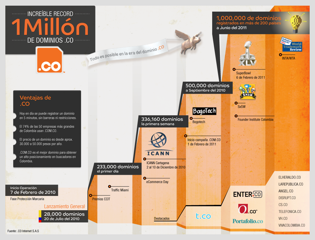El dominio colombiano .co llega all millón de registros #infografia #infographic #internet