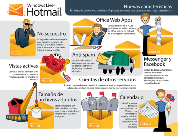 Nuevas características de Windows Live Hotmail #infografia #infographic #internet