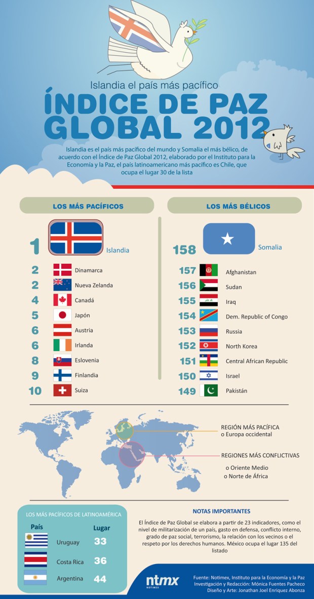 Índice de paz global 2012 #infografia #infogaphic