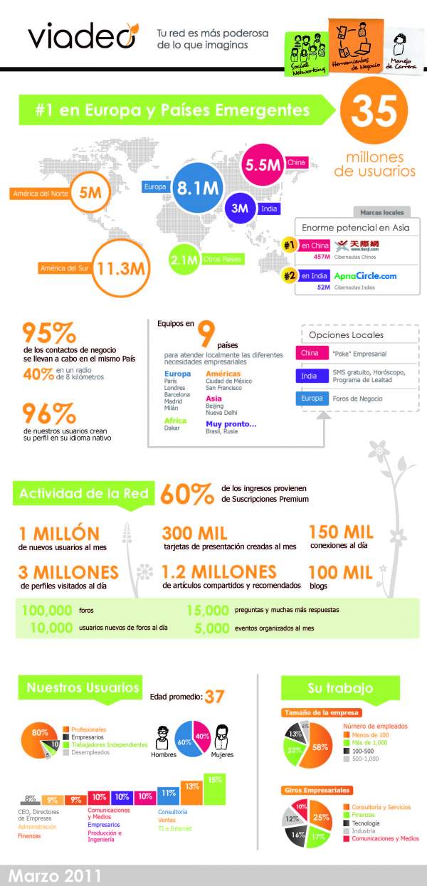 Viadeo, sus buenos números (Marzo/2011) #infografia #infographic #socialmedia
